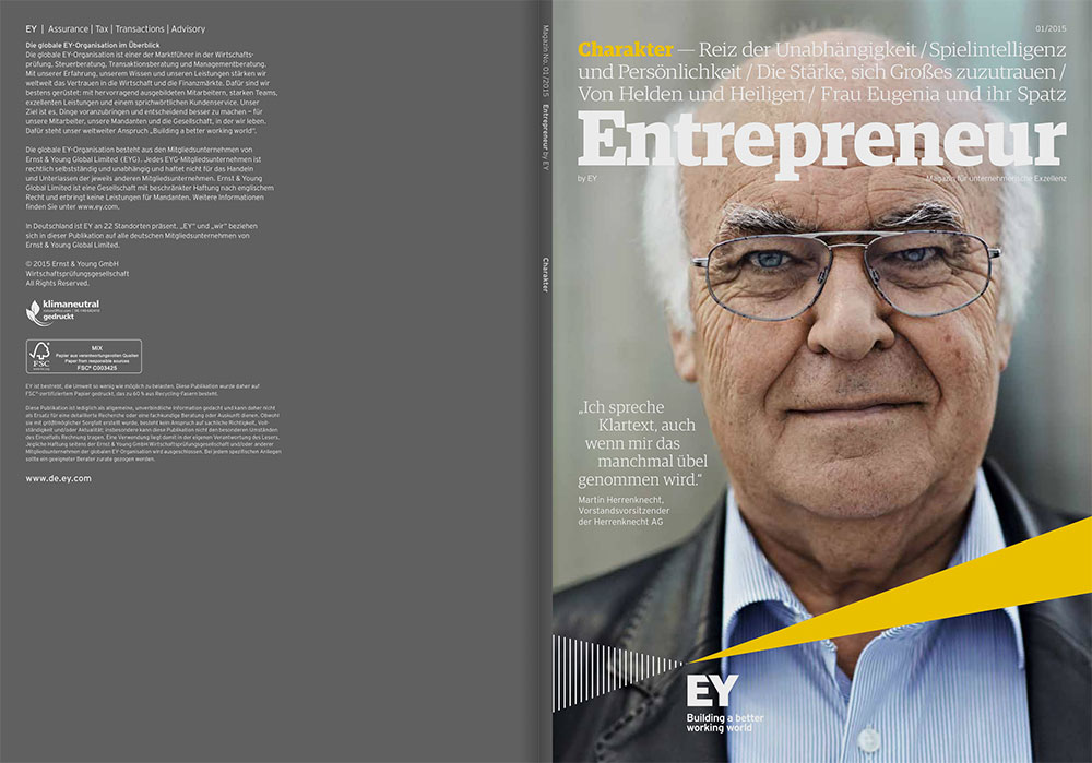 Vor diesem Hintergrund entstand die Unternehmenspublikation „Entrepreneur by EY“ (EOY). Sie spiegelt vor allem das ausgeprägte Engagement von EY für Werte und Kultur einer gelebten Entrepreneurship wider: Seit 20 Jahren würdigt EY mit dem „Entrepreneur Of The Year“ die Leistungen von herausragenden Unternehmern aus dem Mittelstand, Gründern erfolgreicher Start-ups und Familienunternehmen.